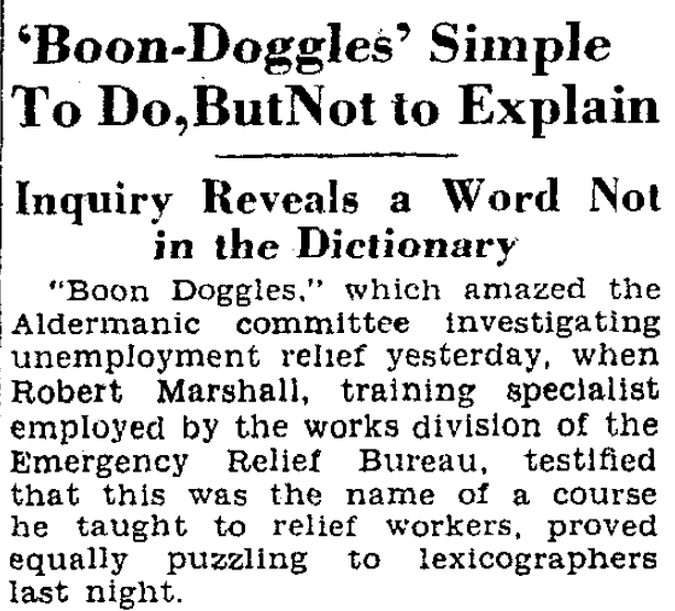 —"New-Born Baby Inspired The Word 'Boondoggle': Scoutmaster's Name for Son Passed on to Handicraft," New York Herald Tribune, Apr. 8, 1935, p. 1.
