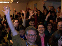 Finally, nominations were made for overall Word of the Year, but after the first round of voting no candidate received a clear majority. That left "most useful" winner Barack Obama (as a combining form) in a runoff vote with the early favorite, bailout. As you can see from the video clip below, after some final speeches from the floor bailout came out ahead.