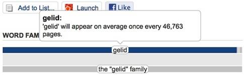 - Familiarity tip! Type the word into the Vocabulary.com Dictionary. You can find word frequency information in the Word Family section, at the top right of the page. If you scroll over cold, a pop-up bubble indicates that "cold will appear on average once every 35 pages." In striking contrast, gelid will only appear on average once every 46,763 pages! Which type of audience is most likely to know this word?