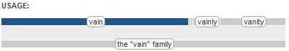 Q: Do you come from a big family? A: Not really. I have two siblings — vainly (adv.) and vanity (noun) — but most people are familiar with me — the adjective of the family. (source: Vocabulary.com usage chart for vain)