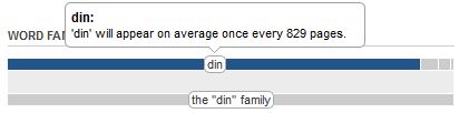 One shortcoming of the Flesch-Kincaid Grade Level Formula is that it assesses vocabulary based only on average number of syllables: the more syllables a word has, presumably the harder a word tends to be. What Flesch-Kincaid does not take into account is how frequently a word shows up in the English language. Students often think of "big words" as being harder words, but word difficulty also boils down to exposure. Although unstoppable has four syllables and din has one, more students have been frequently exposed to the base word of unstoppable: stop (once every 52 pages), whereas din only shows up once every 829 pages. So which word is harder?