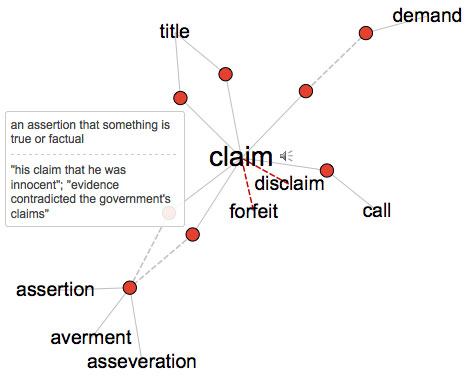If you explore at a Visual Thesaurus word map of the noun meanings of claim, you can see that the SAT is offering several valid meanings for claims in its answer choices and the student must pick the relevant one ("an assertion that something is true or factual"). So, even though answer choices A, B, and C may present valid synonyms for claims, the student must be able to discriminate among these multiple definitions to choose the right one for the context of the reading passage.